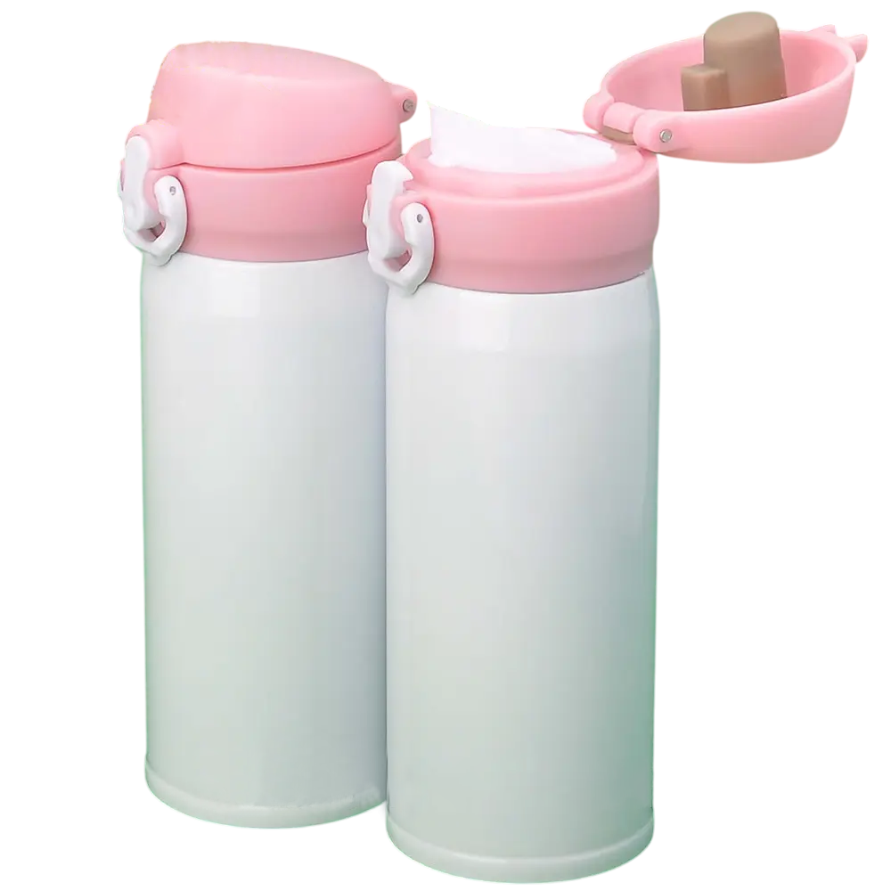 Термос дитячий для сублімації Sublime з лого з рожевою кришкою 350 мл