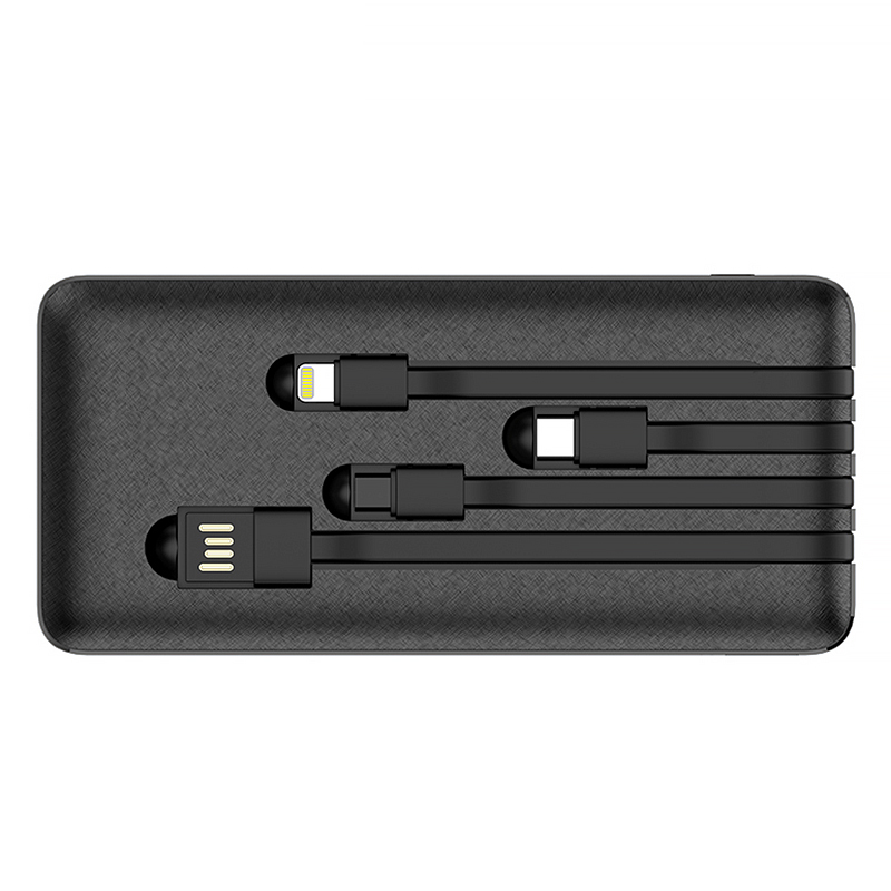 Корпус устройства огнеупорный пластик. Имеет индикатор остаточного заряда. Вход: DC 5V/2.1A (кабель Micro/USB) Выход: DC 5V/2.1A (Micro/iPX/Type-C). Общий выход (USB+кабель): DC 5V/2.1A(Max)