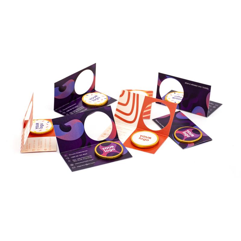 Подарочная визитка с шоколадной медалью — идеальное решение для презентаций, награждений, акций или корпоративных мероприятий. Она сочетает в себе эстетику, качество и практичность.