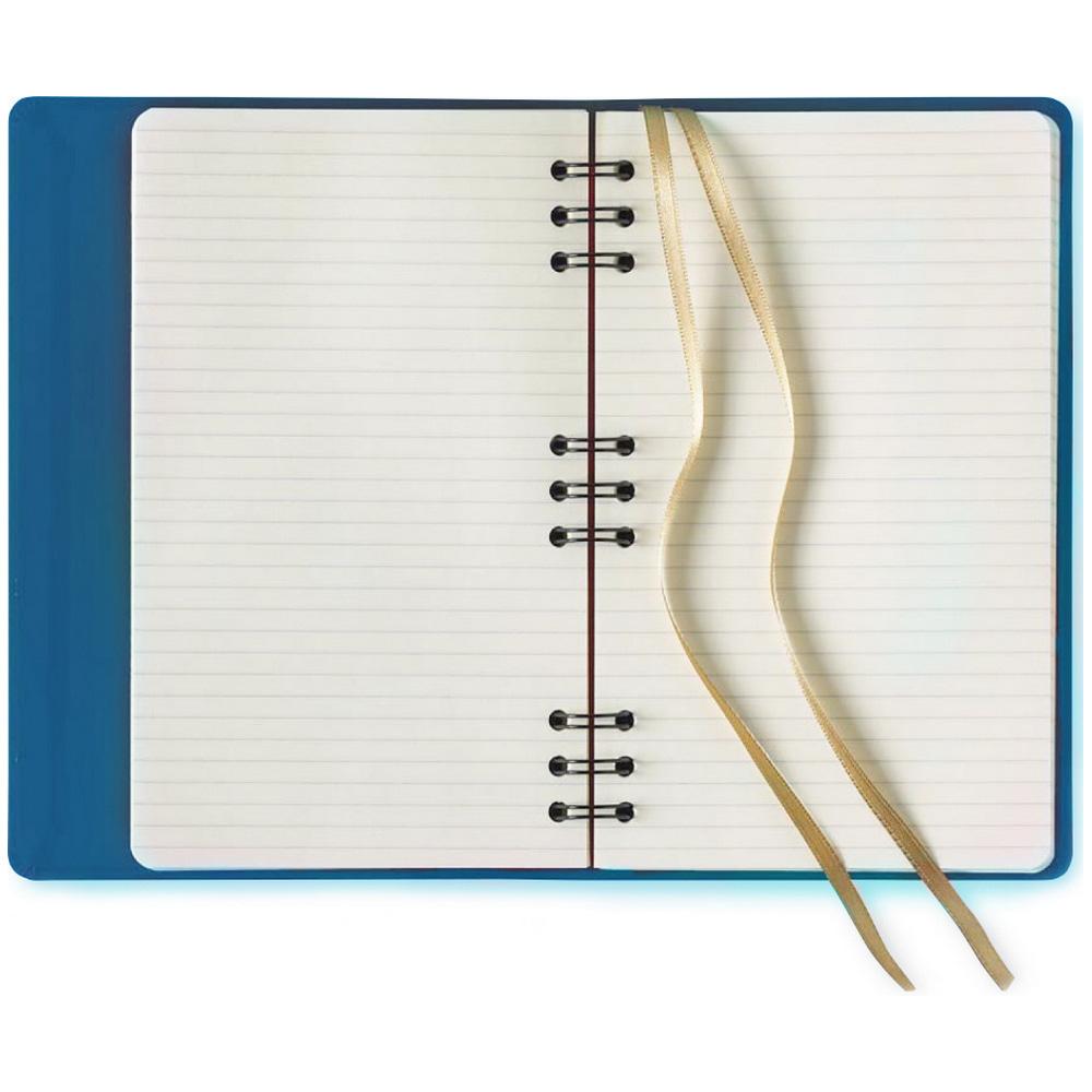 Стильный ежедневник дополнен металлической пружиной, специальной резинкой-фиксатором и тканевой закладкой-ляссе.