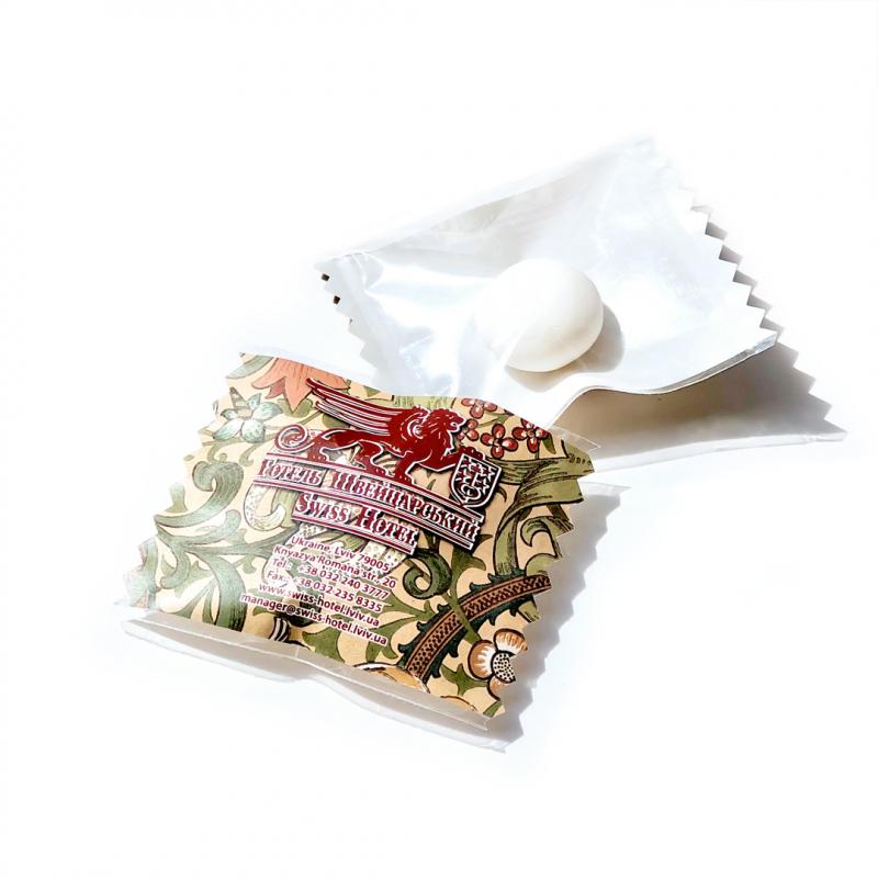 Жвачка упакована в односторонний Флоу пак с полипропиленовой пленкой и бумажным покрытием, устойчивый и эстетичный вариант упаковки.